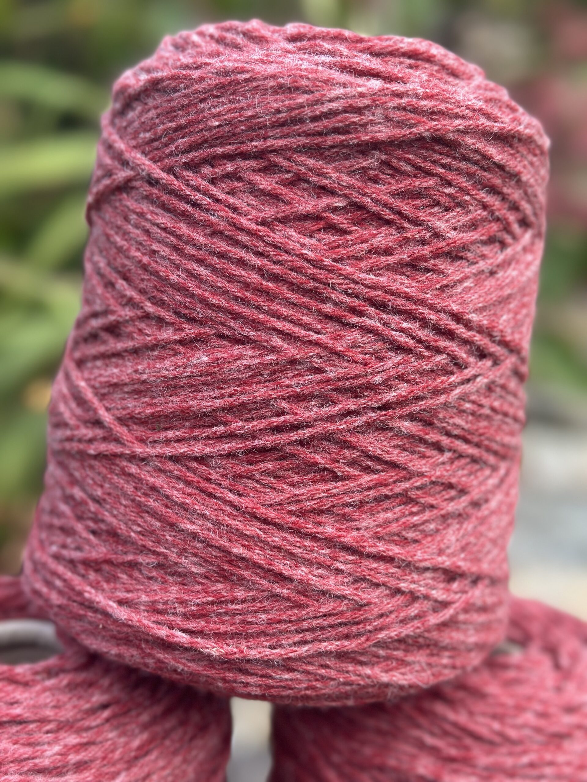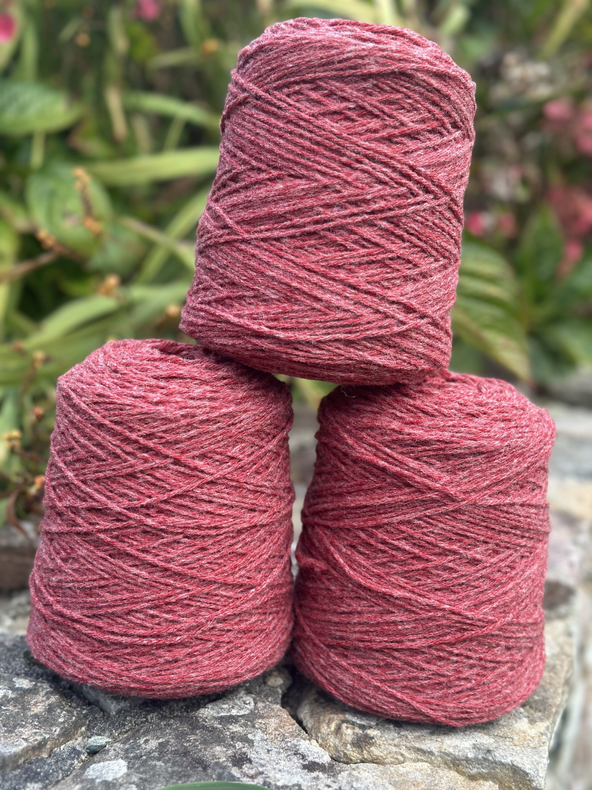 Chaque cône contient 500 g de fil, soit environ 625 m par pelote équivalente (Nm 4/5, 4 brins). Il se tricote avec des aiguilles 5,5 à 7. Les coloris disponibles sont Melrose et Api Rouge. Pour le coloris écru, nous recommandons nos écheveaux Aran sur notre site.