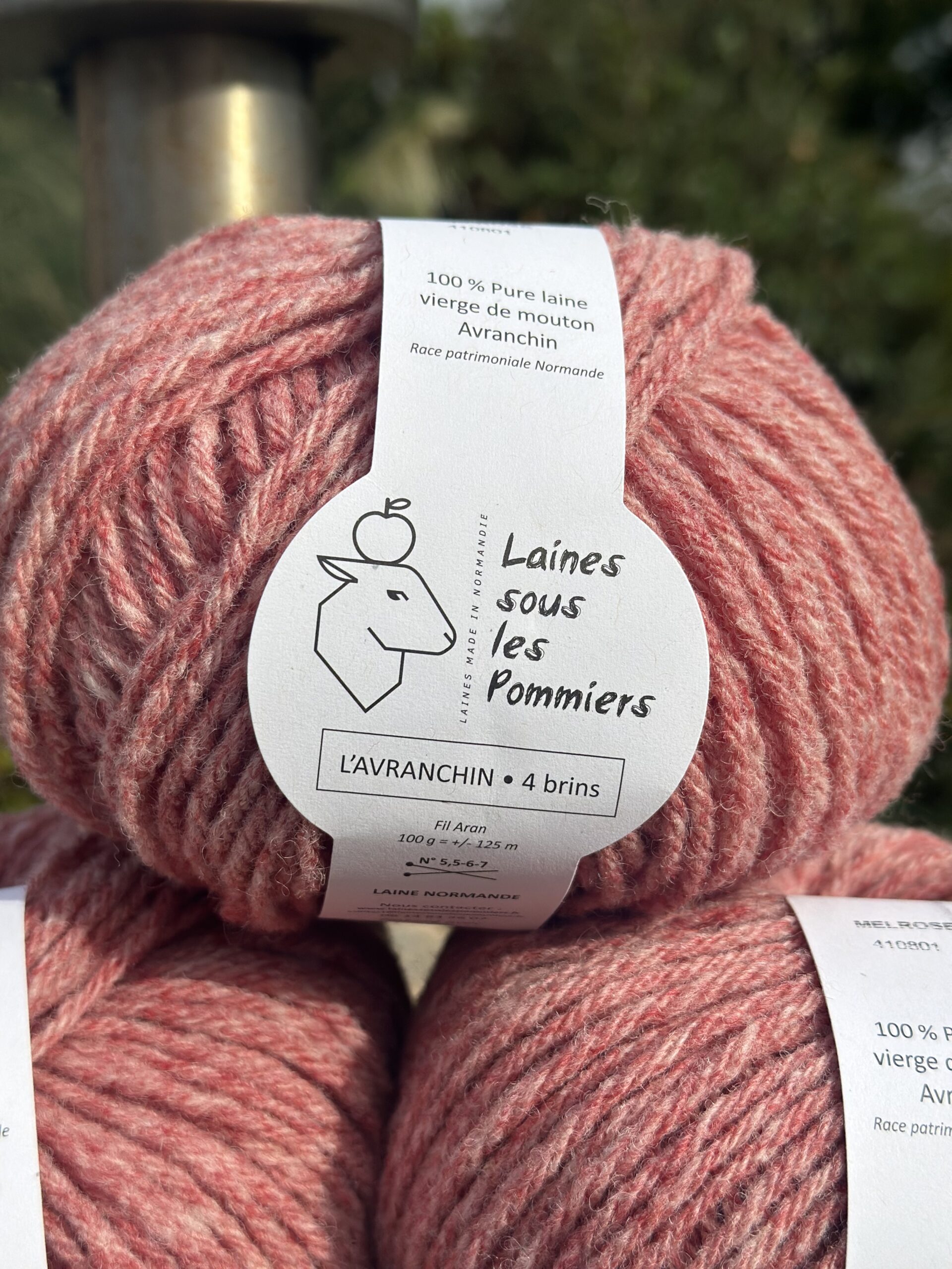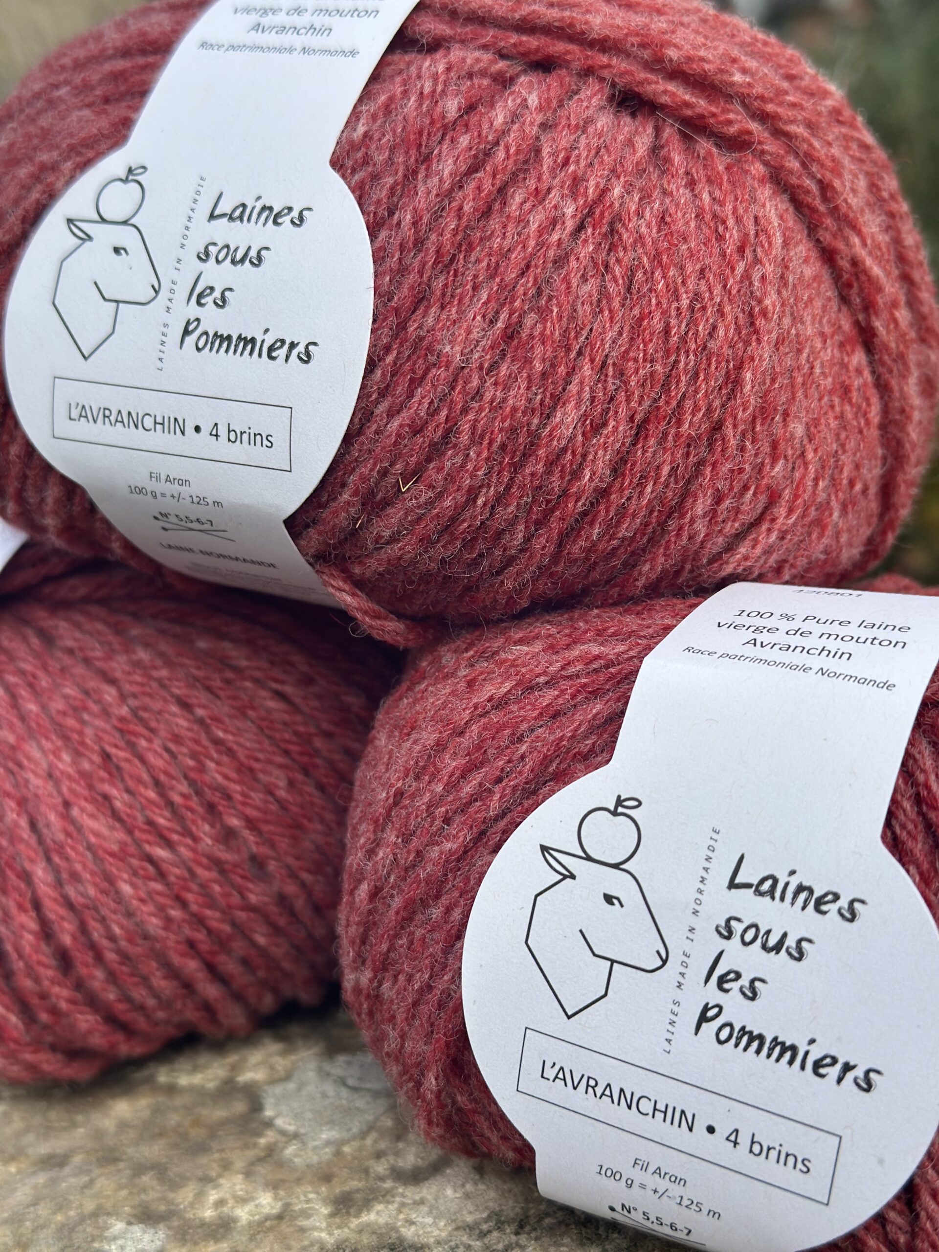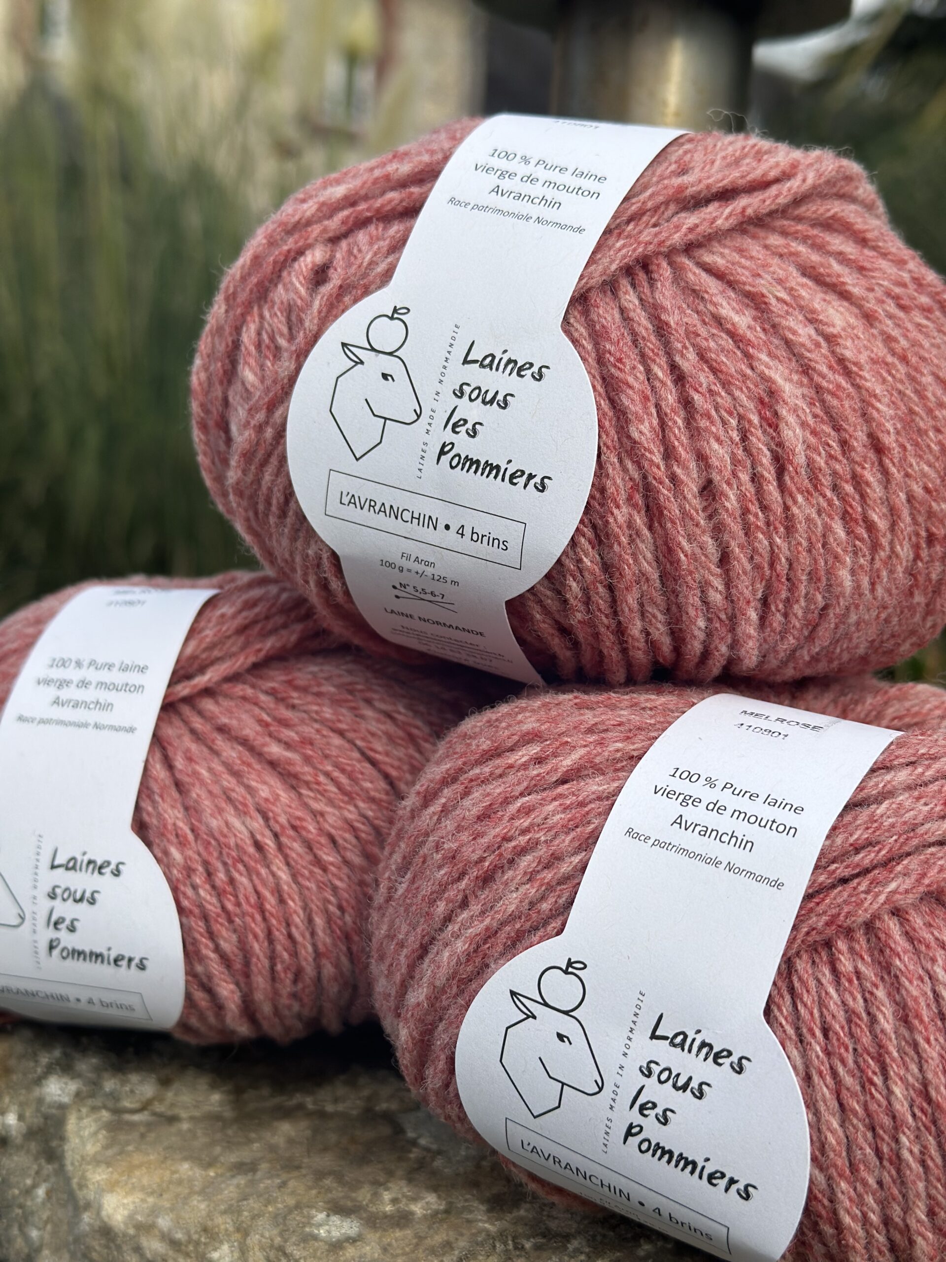 Découvrez L’Avranchin Aran, un Fil épais et moelleux en laine vierge de mouton Avranchin. Coloris Melrose et Api Rouge modernes et polyvalents. Parfait pour pulls, gilets et accessoires confortables, durables et élégants.