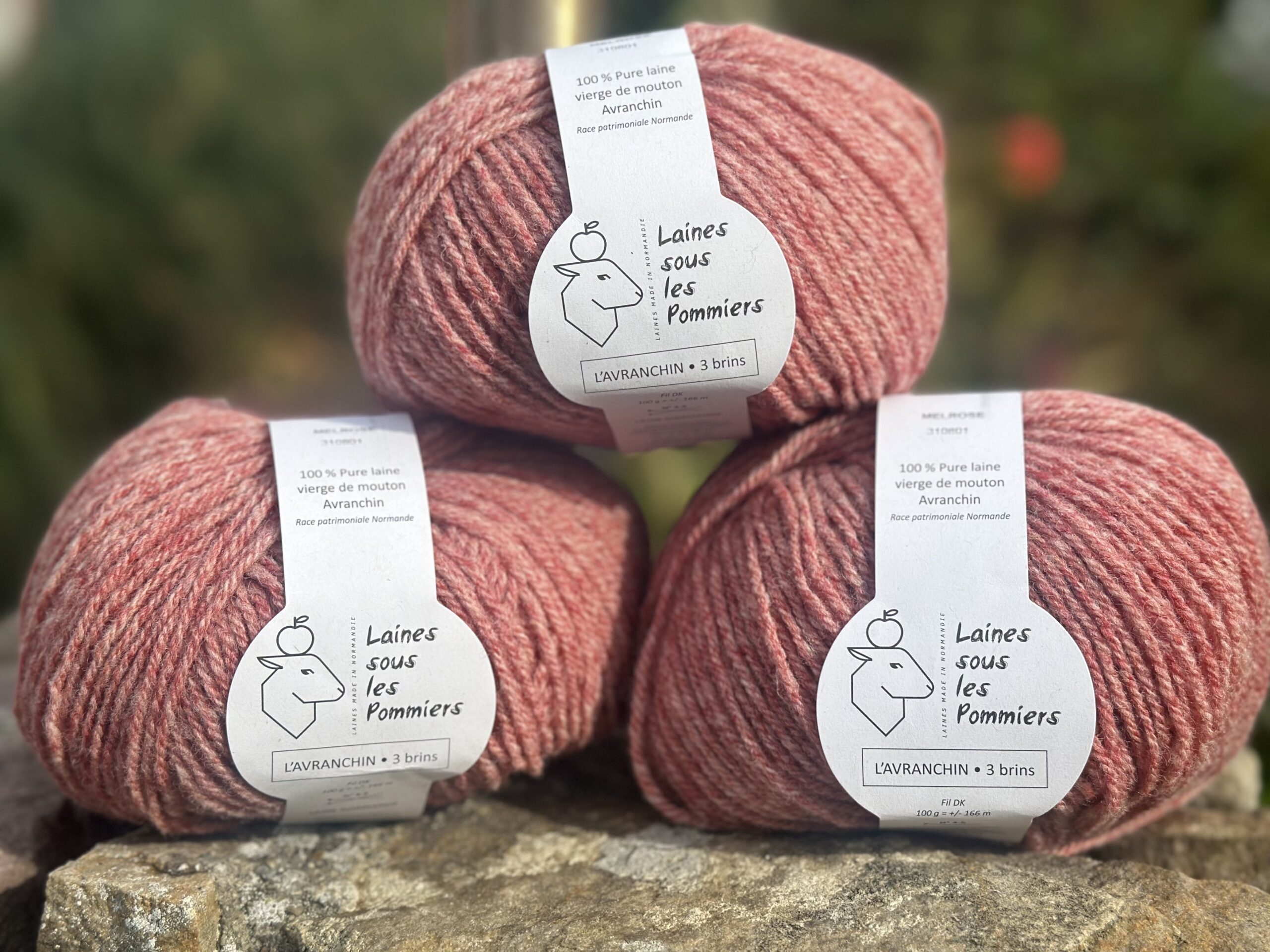 Découvrez L’Avranchin DK, un Fil doux et moelleux en laine vierge de mouton Avranchin. Coloris Melrose et Api Rouge lumineux et harmonieux. Une laine polyvalente, confortable et chaleureuse, parfaite pour donner vie à des créations uniques, élégantes et durables.