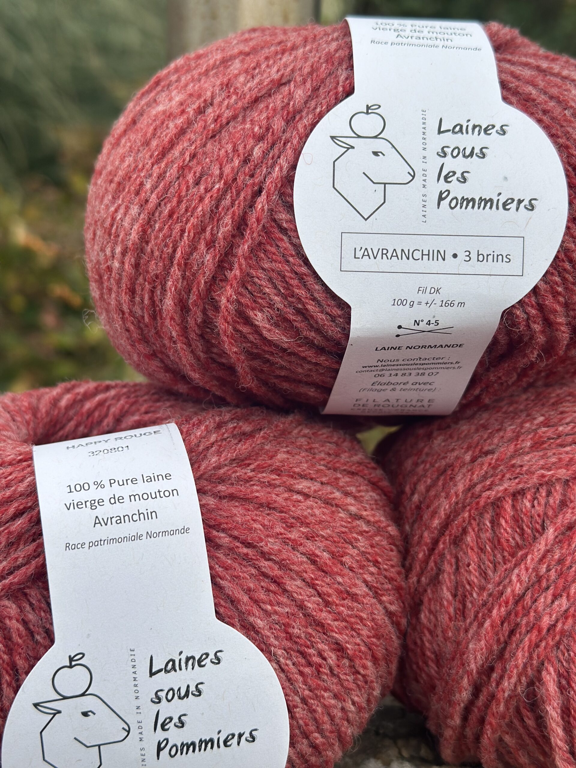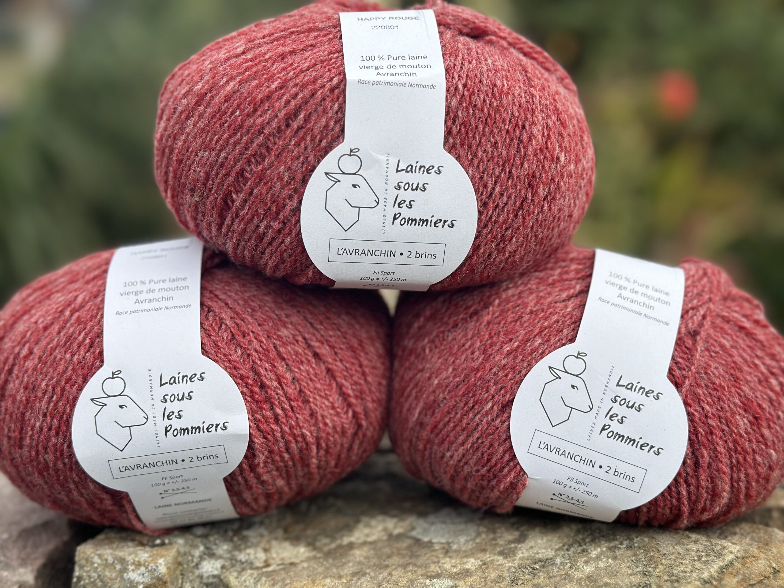 Nous proposons deux nouveaux coloris : Melrose et Api Rouge. Ce sont des dégradés d’une même teinte, subtilement chinés. Les nuances peuvent se mélanger naturellement ensemble (ou avec un autre fil Sport de chez Laines sous les Pommiers), ce qui permet de créer des harmonies douces ou contrastées, selon vos envies. Ces tons et ce chiné sont obtenus grâce à la teinture en bourre. Cela réduit l’usage d’eau et de colorants. Le résultat est une couleur profonde, nuancée et écologique.